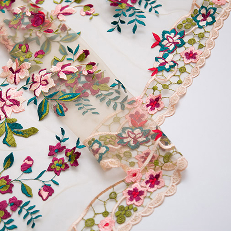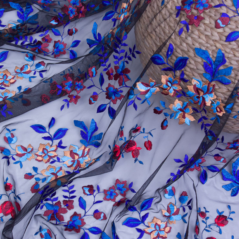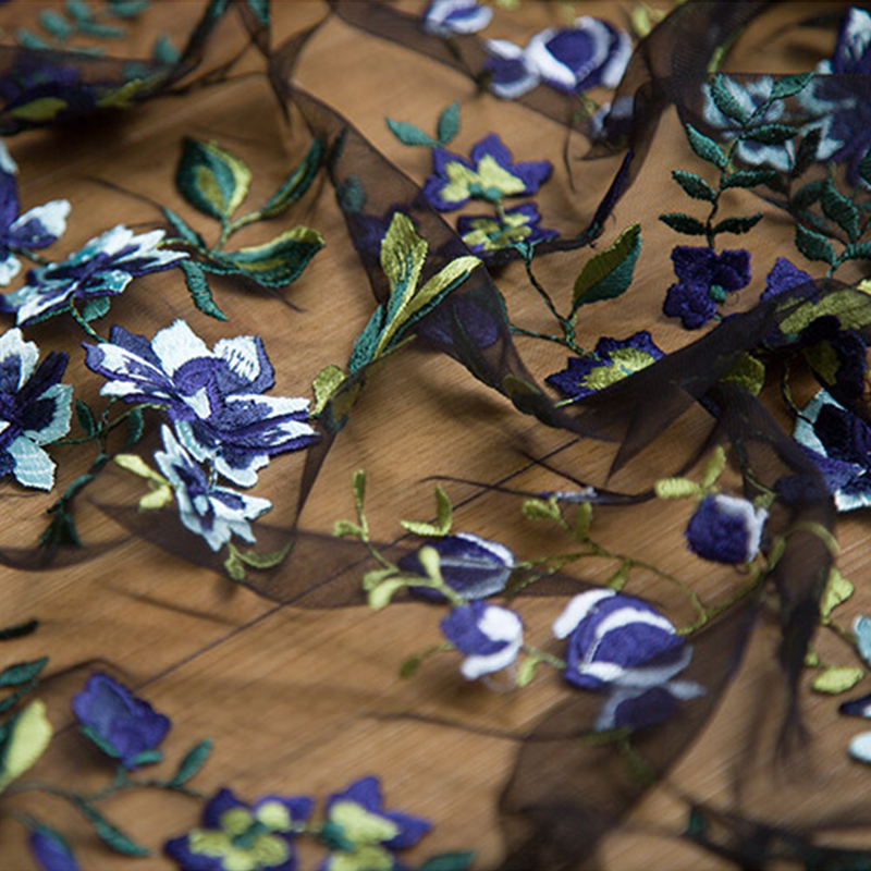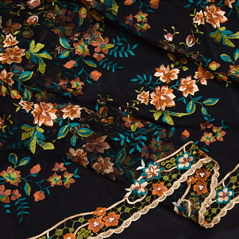 customizable nude beige gauze black flower embroidery fabric lace for women